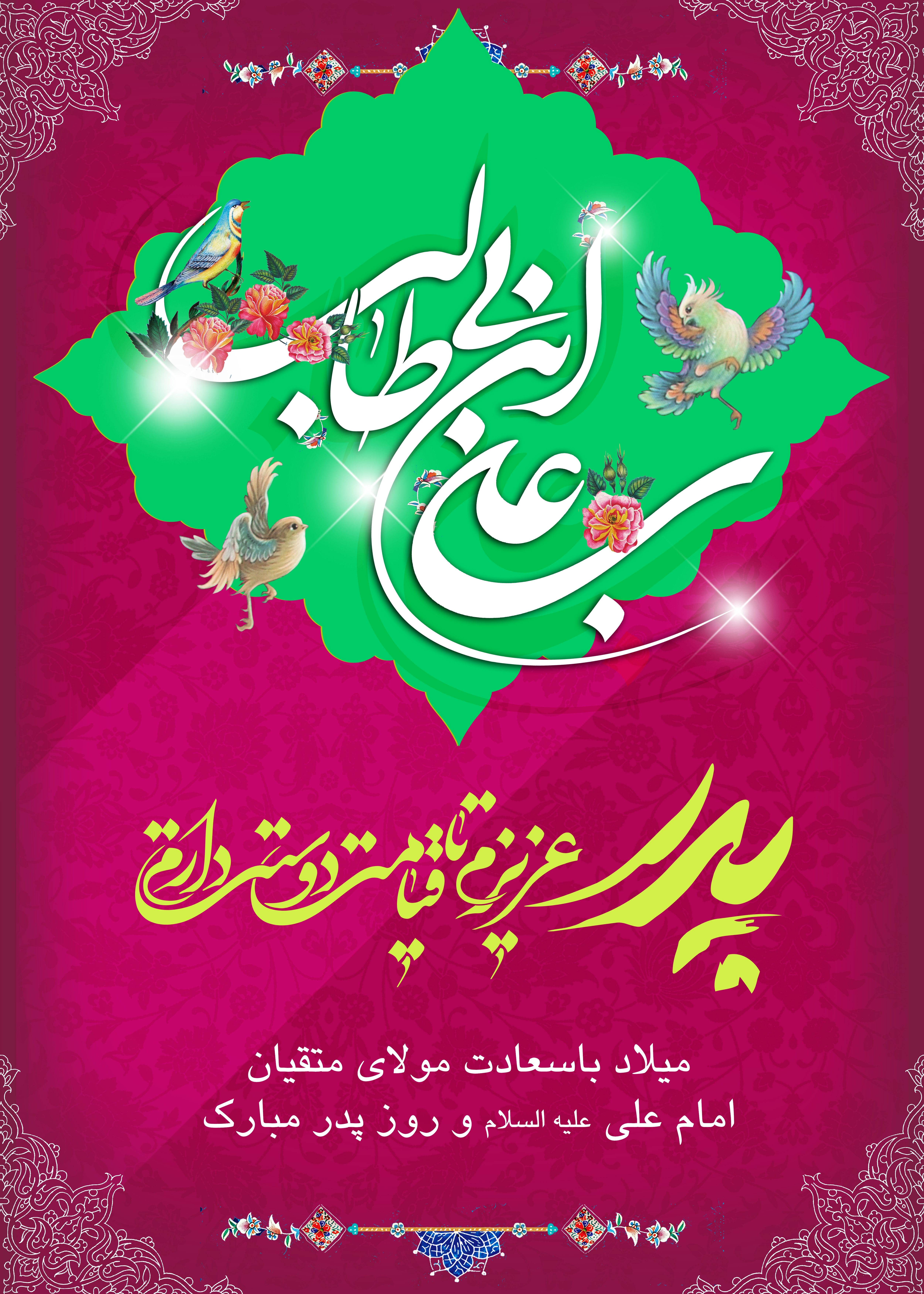 تصویر دیگری که برای ۱۳ رجب سالروز ولادت با سعادت امام علی علیه السلام طراحی کردیم مزین است به نام مبارک امیرالمؤمنین علی بن ابی طالب علیه السلام که امیدوارم از این تصویر بهره لازم رو ببرید و ما را از دعای خیرتان بهره مند بفرمایید. ان شاء الله تعالی…